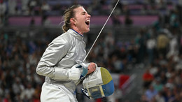 Жіноча збірна України з фехтування на шаблі у фіналі здолала суперниць з Республіки Корея та здобула першу золоту медаль.
